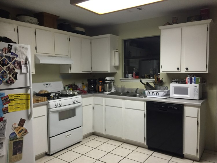 Hello friends!!! I was on Facebook yesterday and realized via TimeHop that it has been a year this week since we started painting our kitchen cabinets. What a perfect time to let you guys in on exactly how we did it and give some of my favorite before and afters. When we started this process they looked like this…